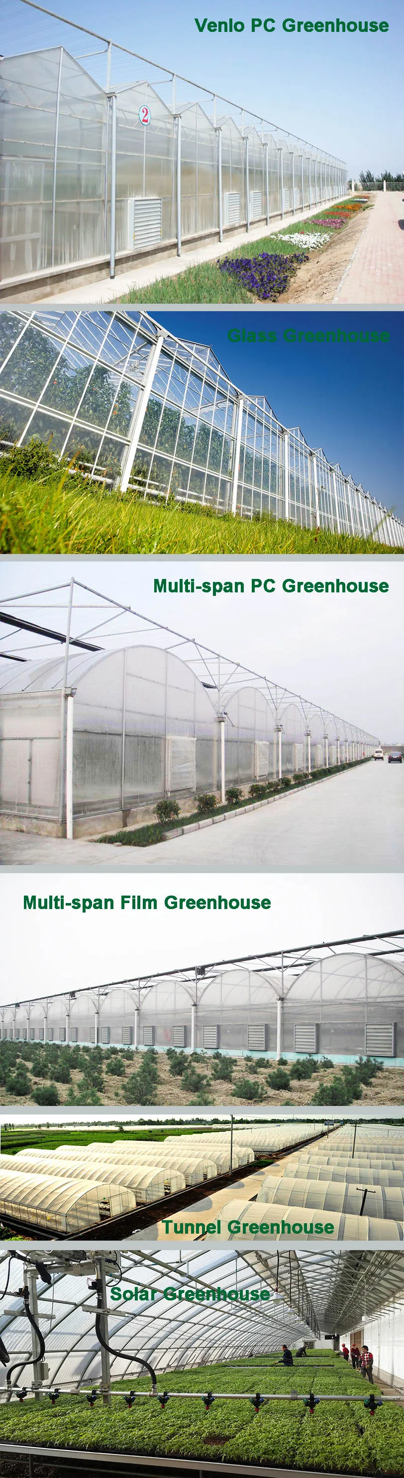| Greenhouse Type (classified by covering) | Film (PO/PE/EVA) Greenhouse | Polycarbonate Greenhouse |